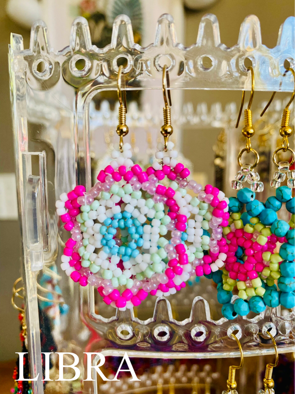 Celebrate the cosmos with our handcrafted seed bead mandala earrings, where every colour symbolizes a zodiac sign. Each piece is thoughtfully designed to reflect the unique energy and essence of the stars. Wear your sign with pride or gift a loved one's constellation to light up their style.